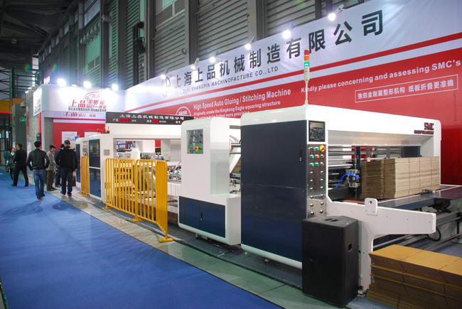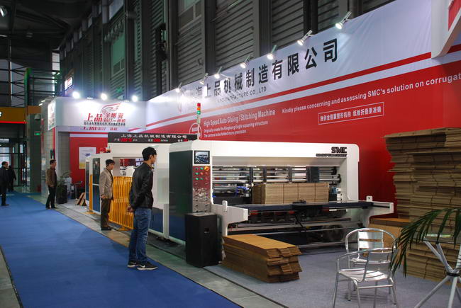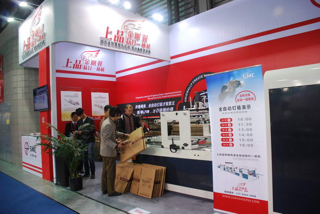 2015年4月14日纸箱行业年度盛会--上海国际瓦楞展在上海新国际博览中心隆重开幕,上品机械金刚翼粘钉一体机参加了本次会展。