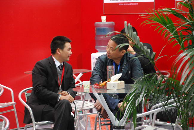 开馆后上品的展位观众络绎不绝,上品机械的接待人员热情周到。