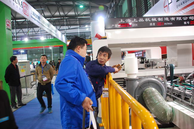 2015年4月14日纸箱行业年度盛会--上海国际瓦楞展在上海新国际博览中心隆重开幕,上品机械金刚翼粘钉一体机参加了本次会展。
